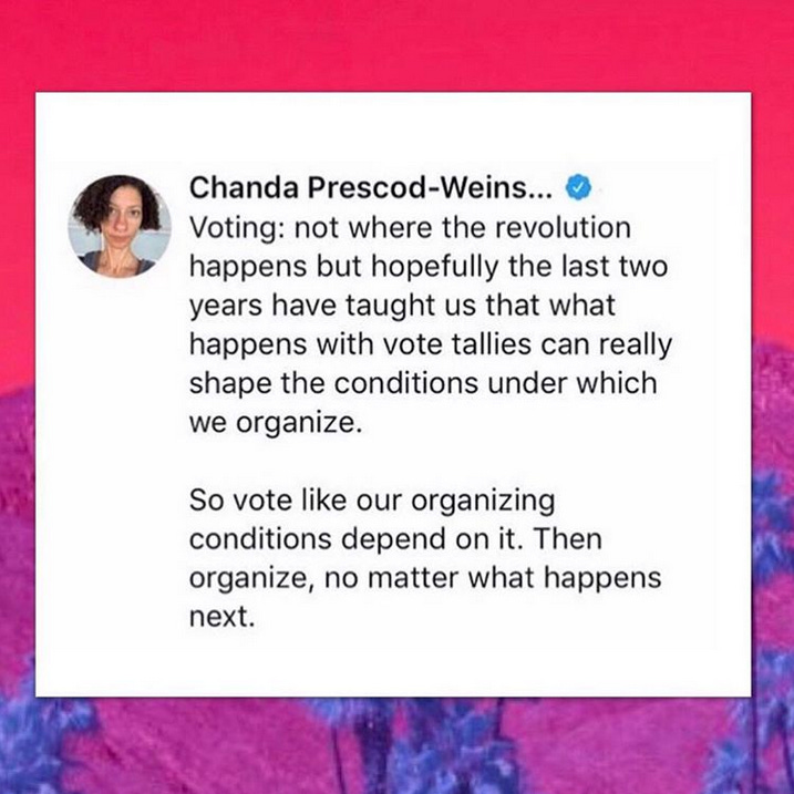 This is my last email before Election Day. If you are able to vote, please listen to Roxane Gay (You’re Disillusioned. That’s Fine. Vote Anyway, NYT) and show up on Tuesday or vote early if you can. Don’t take chances.