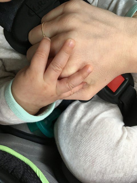 Her approaching birthday feels a little like New Year’s Eve: Part of me wants to fully indulge. I want to drink champagne and burn a list of everything I’m letting go of and sing some karaoke and sleep in (to be clear, this is what NYE looked like a decade ago, not this year). I want to eat the dinner I ate the night before she was born and the breakfast from the morning after. I want to send sincere thank you gifts (maybe plants would be nice, or a donation to an org fighting family separation or one supporting incarcerated pregnant women? Ideas welcome, I’m brainstorming) to everyone who’s helped us make it through this beginning.